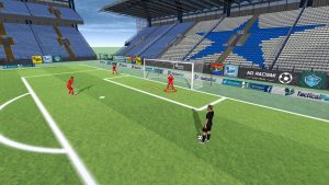 - Reposicionamiento y carrera con dos saltos frontales: Después de la estirada, el portero se reposicionará y realizará una carrera corta hacia adelante. Durante la carrera, el portero deberá ejecutar dos saltos frontales explosivos, manteniendo una buena postura y equilibrio.